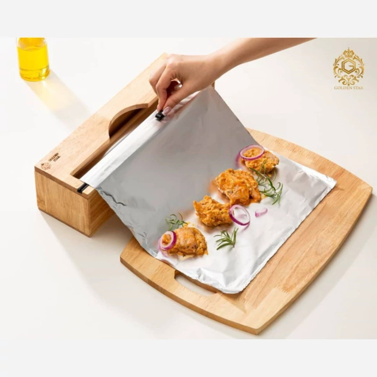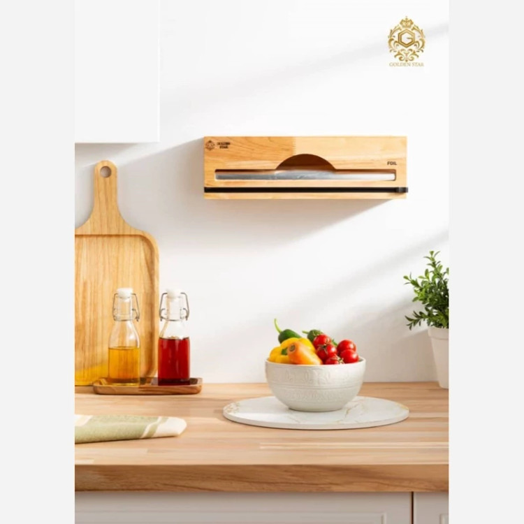 سلفون کش تک رول گلدن استار مناسب برای سلفون و فویل دارای تیغ دو لبه و برش از راست به چپ و بلعکس قابلیت نصب روی دیوار چوب وارداتی رابر وود مقاوم در برابر آب بسیار شیک و کاربردی تهیه شده از بهترین متریال