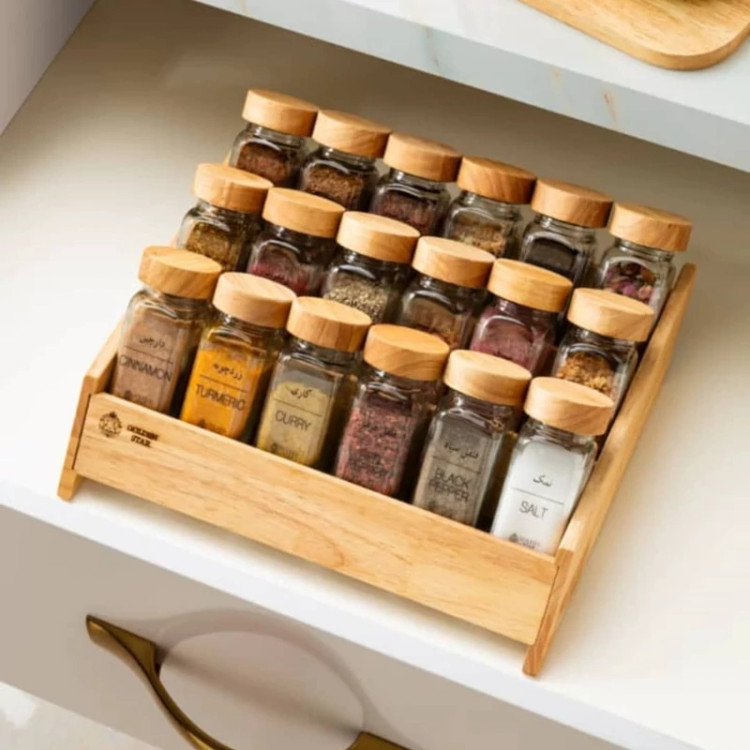 پک ادویه 18 عددی مک کارتی همراه با استند چوبی رابروود گلدن استار